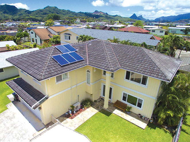 Adding a large covered lanai to a home will provide shady outdoor accommodations while having a cooling effect on the interior. Sun-soaked windows can be shaded with fixed overhangs, louvers, exterior awnings or plants. Upgrading to energy efficient lighting and appliances will also help keep spaces cool. Pick a light-colored roof to reflect heat. And, fi nally, while the sun will heat up a home, homeowners can take advantage of it by adding solar to save on energy bills!