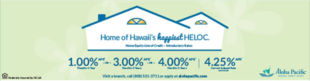Membership ($5 in Regular Savings) required. Loan offerings are subject to approval. Some restrictions may apply. Contact Aloha Pacific for applicable terms.