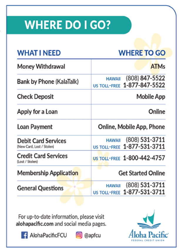 Aloha Pacific Federal Credit Union is offering special relief programs through May 31 for members who find themselves in financial difficulty because of the coronavirus.