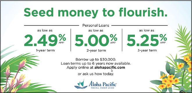 Loan terms up to 6 years are also available. Visit any branch or go to alohapacific.com for more information.