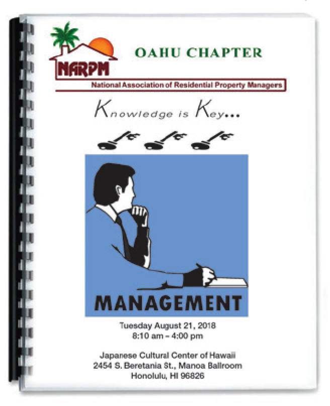 On Tuesday, August 21, 2018, the Oahu Chapter of the National Association of Residential Property Managers will present their 13th annual property management seminar. This year’s seminar is at the Japanese Cultural Center 5th floor at 2454 South Beretania Street and will begin at 7:45 am with check-in and breakfast pastries. There will also be numerous vendors showcasing their products and services that will help you to manage your properties.
