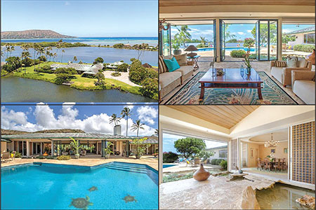 And so it is with this five-bedroom, six-bath, single-level home in a private, gated community overlooking picturesque Paiko Lagoon. The spacious residence features almost 8,000 square feet of living area, including a guest house, and is in excellent condition. An indoor waterfall and pond graces the entry to the home, which is located at the end of a driveway that encircles a water fountain.