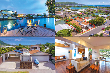 Currently available from East Oahu Realty is a choice Marina listing, a four-bedroom, four-bath home with two boat docks. Priced at $1.6 million, the spacious 2,352-square-foot home was built in 1988 and extensively remodeled in 2011. The 7,080-square-foot waterfront lot is landscaped and includes a sprinkler system, mature plumeria trees, and a rock wall.