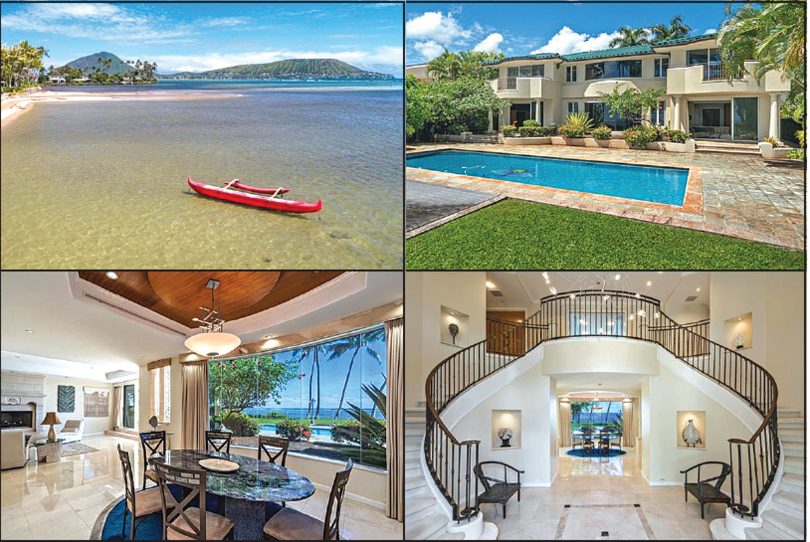 “The vision as you first step into the home is absolutely stunning, with the double curved staircase framing the oversized picture window looking directly out to Maunalua Bay,” Yoo said. “There is a quiet elegance in the architecture that complements, rather than competes, with the panoramic view.”