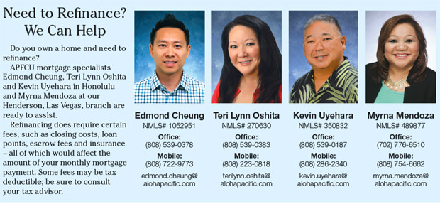 Save time by applying online at alohapacific.com or visit any APFCU branch. Call 808-531-3711 for more information.