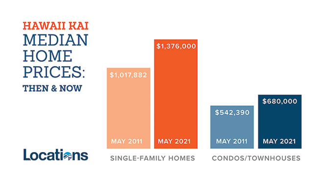 The increasing pace of property sales in 2021 reflects strong demand for Hawaii Kai homes. Last month, properties in Hawaii Kai saw some of the lowest “days on market” (or number of days from listing to escrow) on the island — at just 14 days for single-family homes and 21 days for condos.