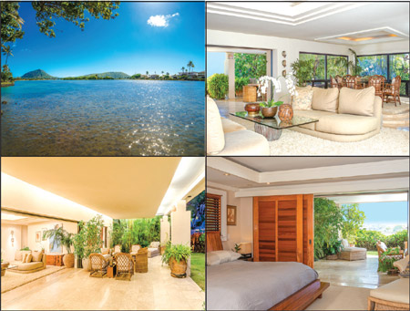 Listing Realtor Anne Oliver of Coldwell Banker Pacific Properties points out that the approach to the home is by a long, private driveway from Kalanianaole Highway approximately a mile east of Hawaii Loa Ridge. “The property is 330 feet off the highway, so there is no traffic noise…it’s very quiet and peaceful, and once you’re inside the gate and looking out at the calm lagoon, you are in another world.”