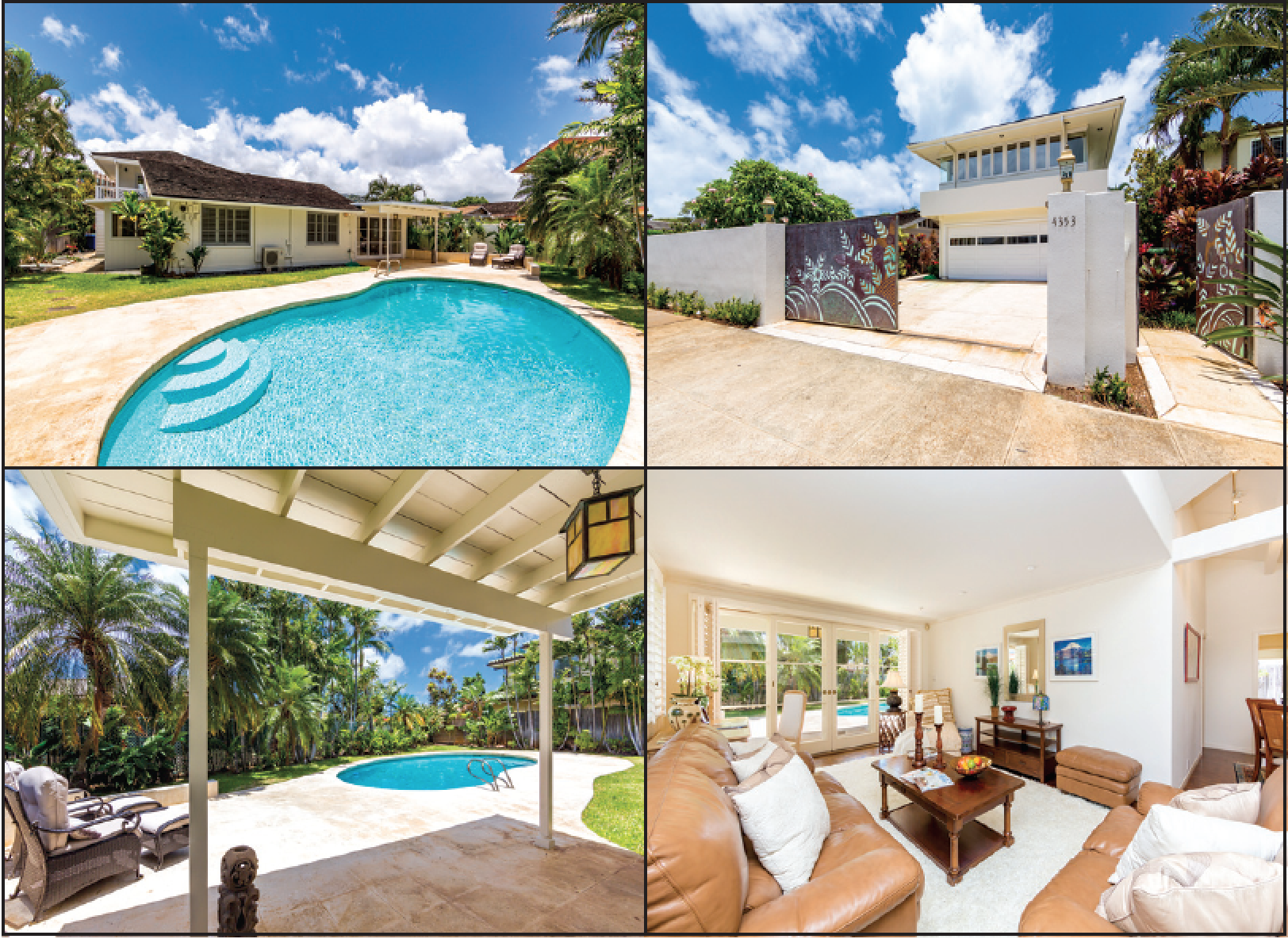 An extensively remodeled, well maintained home on Pahoa Avenue is a classic example of how a thoughtfully designed layout can support indoor/outdoor living and maximize use of lot space. Offered at $2,590,000 by Sachi HI Pacific Century Properties, the 8,425 square foot property, which is walled and gated, includes a main dwelling, two-car garage topped by a large studio, swimming pool, and gardens. Built in 1957 and completely remodeled in 1989, the 1,908 square foot home is amplified by covered lanais and a backyard with a paved deck surrounding the oval swimming pool.