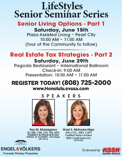 Kay Mukaigawa, President and Principal Broker of ENGEL& VÖLKERS Honolulu states, senior housing tends to be more resilient to the ups and downs of the real estate market. Over the years, senior living communities have maintained a high-level of occupancy and not as susceptible to the swings as other real estate properties have been in accordance mortgage interest rates and the economy.