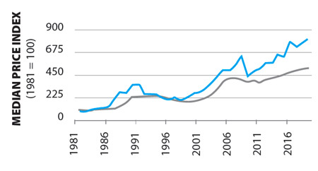 Locations’ research has been tracking the price index for Kahala and Oahu overall since 1981. At halfway through 2019, the Kahala price index is 815, compared with 509 for Oahu overall. While Kahala experienced sharper price drops than Oahu overall in the past three decades, its price increases have been steeper, too.