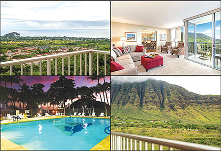 He is currently offering a unique apartment on the 12th floor of Makaha Valley Towers with panoramic views of the mountains, ocean, and golf course at $469,000 inclusive of furnishings and two parking stalls.