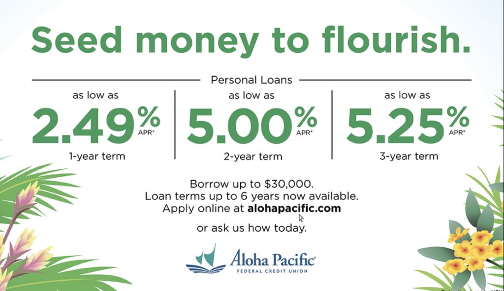 Loan terms up to 6 years are also available. Visit any branch or apply online at alohapacific.com.