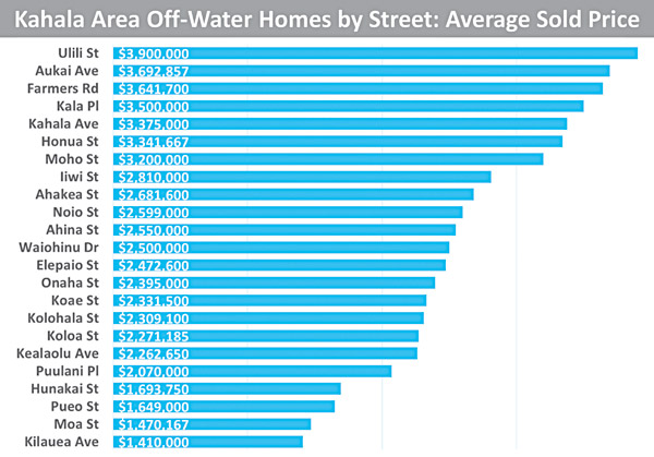 Since the year 2000, homes in Kahala have more than tripled in value. The median-sold price for a single-family home in Kahala in the first half of 2018 was $2.9 million and it’s likely that the median will surpass $3 million by the end of the year. But, to look at all of Kahala, as one median price, would not do buyers or sellers justice. As the supporting graphic shows, Kahala homes vary greatly from street to street, each for a variety of reasons.
