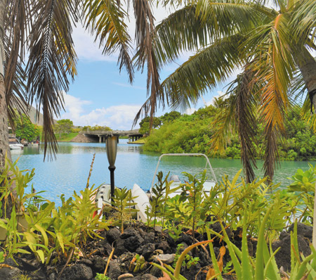 This 1,753-square-foot condo at Gateway Peninsula in Hawaii Kai is ideally situated overlooking the marina, with a view of Duck Island, Koko Crater, and includes a private boat dock. Surrounded by tropical landscaping, the setting is lush and secluded.