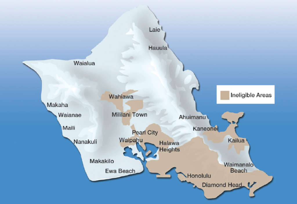 Aside from reduced fees, the USDA loan is a great option due to the features of the program itself. The USDA loan allows participating lenders to provide up to 100% financing on homes in designated rural areas. These designated areas, as shown on the map, include Kapolei and Ewa Beach. As a conventional 30-year, fixed-rate product, it is straightforward and uncomplicated for those who may be new to home loans. The USDA home loan also allows for buyer qualification with less –than-perfect credit.