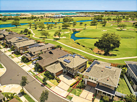 Built new in 2013 and fronting the seventh hole of the Hoakalei Country Club in Ewa Beach, this exquisite 4-bedroom, 3-bath home sits on a 6,029-square-foot homesite. A versatile floor-plan offers one full bedroom and bath downstairs, and 2,665 interior square feet along with central air and a photovoltaic system. Golf, dining and social memberships are available at the Hoakalei Country Club, which opened a new clubhouse this month featuring a restaurant, pool, and pool-side bar and dining.