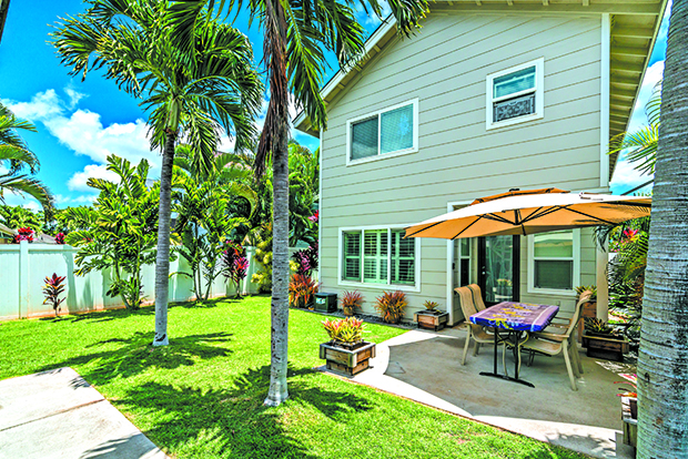Located in Ocean Pointe, this four-bedroom, three-bath home on a 4,283-square-foot lot, includes this professionally landscaped, low-maintenance yard (see photo). With a full bedroom and bath downstairs, it is great for multi-generational living. It also includes earth-friendly photovoltaic panels — nine owned and 21 leased and under warranty, with an option to purchase — as well as two leased Tesla batteries. For a virtual tour, visit player.vimeo.com/video/414089179.